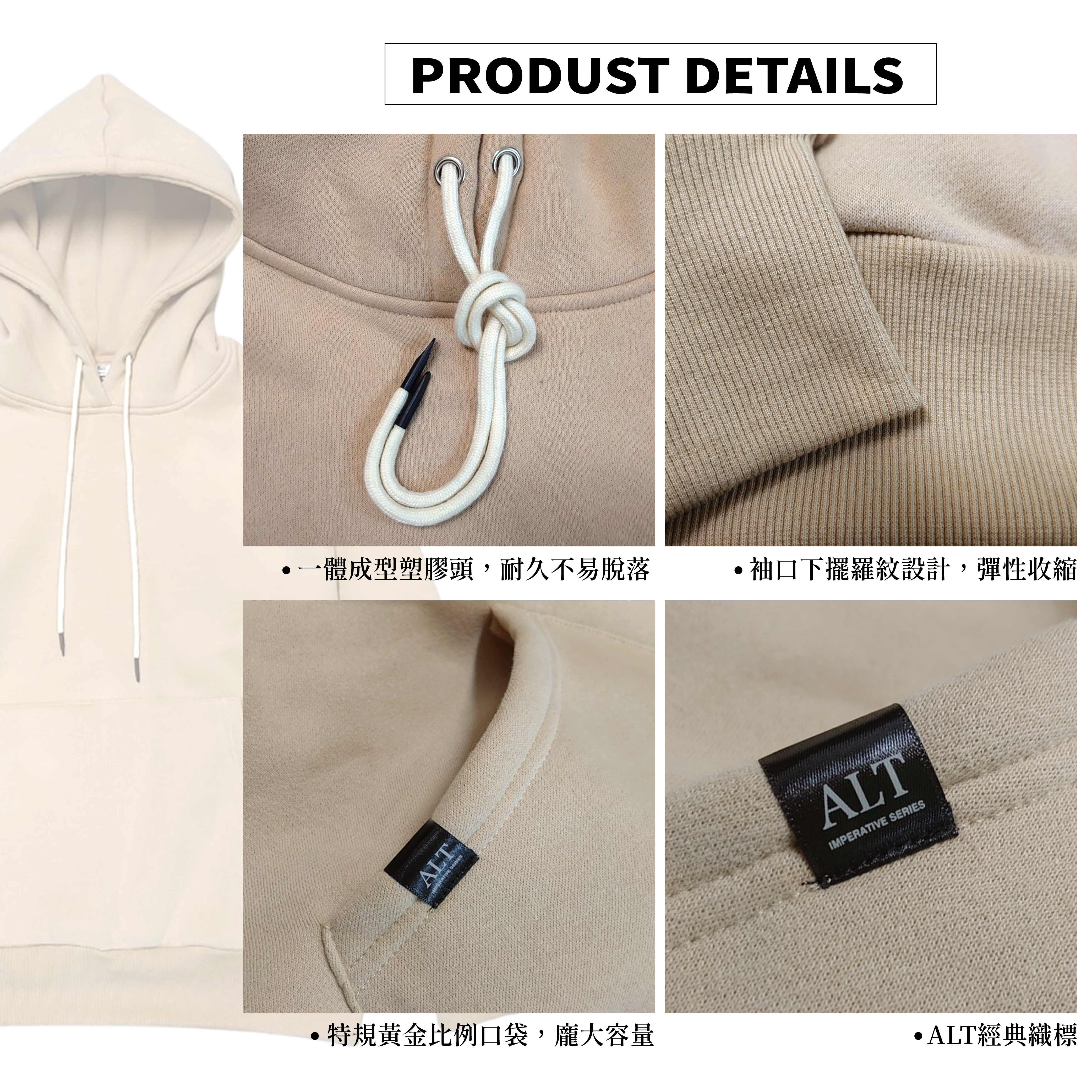 ✓袖口下擺羅紋設計,彈性收縮
